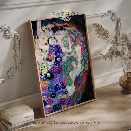 La peinture classique à l'huile sur toile de Gustav Klimt intitulée "La Vierge", disponible sur commande en tant qu'impression d'art giclée premium avec une large gamme d'options de cadrage.