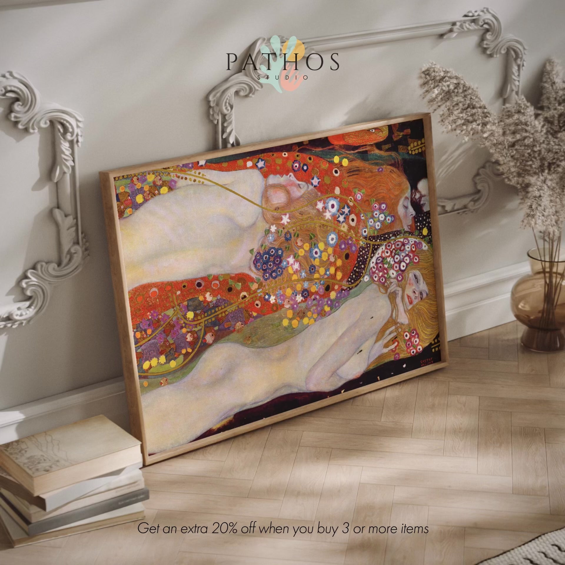 La peinture classique à l'huile sur toile de Gustav Klimt intitulée "Serpents d'eau II", disponible sur commande en tant qu'impression d'art giclée premium avec une large gamme d'options de cadrage.