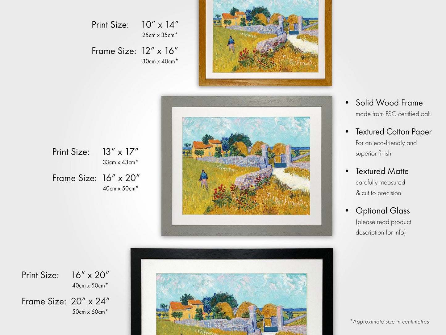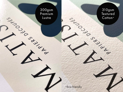 Veuillez noter que tous nos produits encadrés incluent du papier de coton texturé en standard en raison de la qualité et de la résistance suprêmes du matériau.