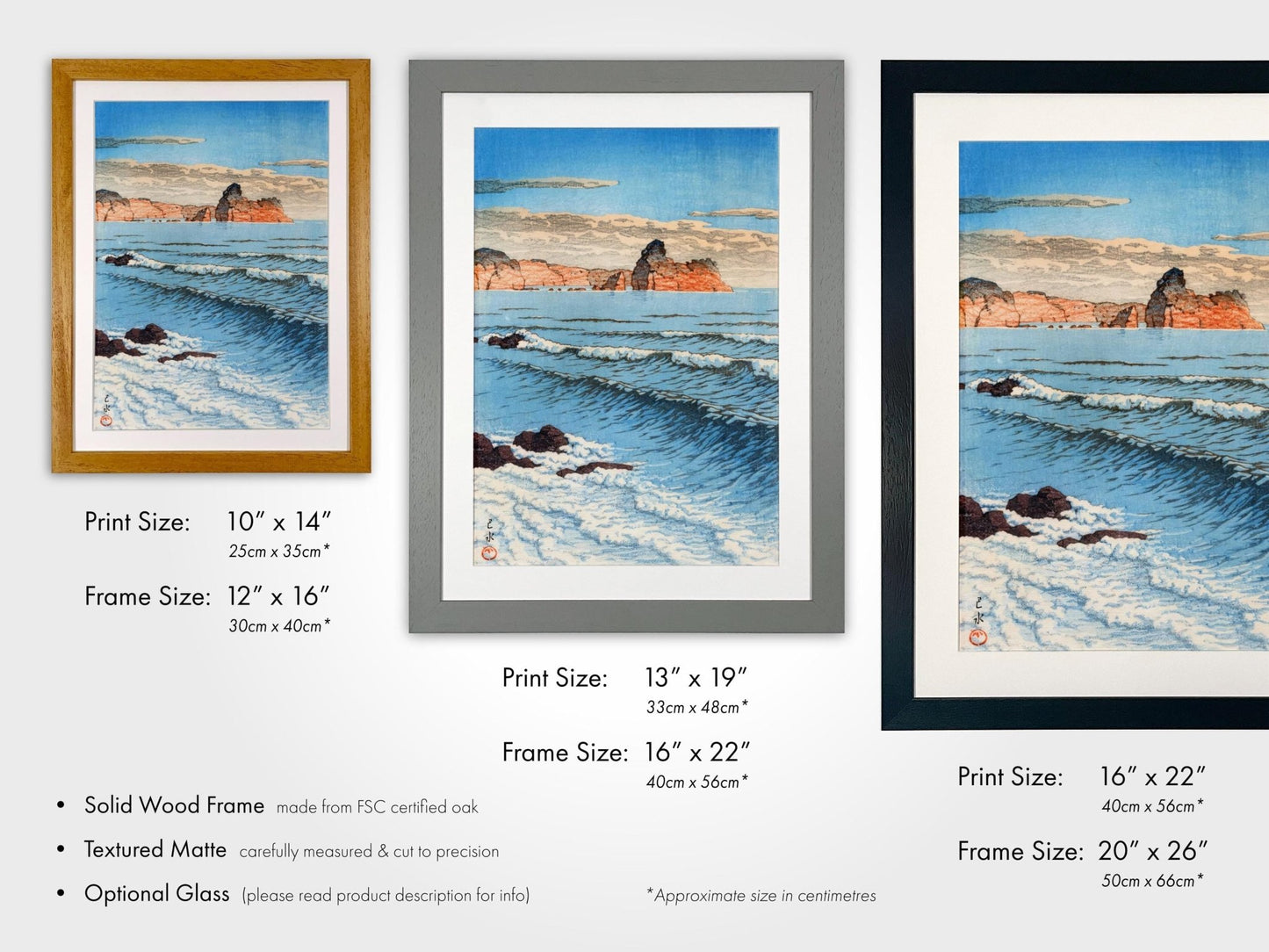 Please see related images for our range of frame options and detailed sizing information.