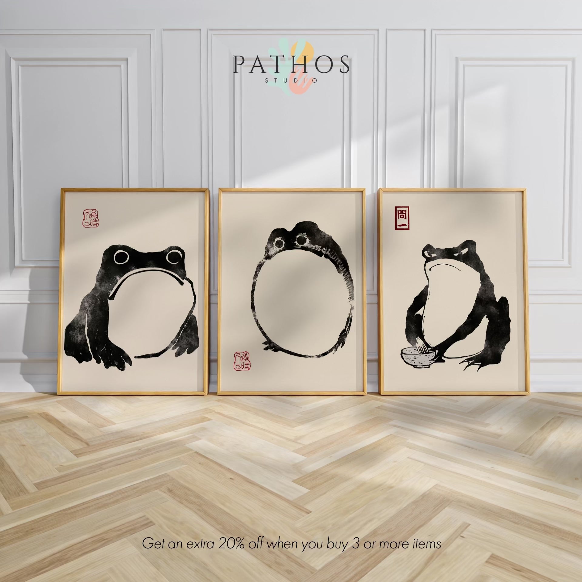 A pre-selected collection of 3 giclée art prints specially chosen by our team and available at a convenient bundle price. This particular set includes 3 frog prints by Japanese artist Matsumoto Hoji.